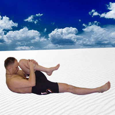 Порядок выполнения такой. Сначала на выдохе прижимаем ко лбу правое колено. После короткой задержки дыхания, на вдохе выпрямляем правую ногу и на выдохе опускаем на пол. Затем поднимаем левую ногу на вдохе, и на выдохе прижимаем левое колено ко лбу. На вдохе выпрямляем левую и на выдохе опускаем на пол. Затем на вдохе поднимаем обе ноги и на выдохе прижимаем колени ко лбу. Упражнение можно повторять два - три раза.
