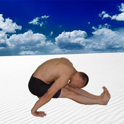 Если и эта позиция также станет легкой, захватить правое запястье кистью левой руки или левое запястье кистью правой руки и поместить подбородок на голени за коленями.