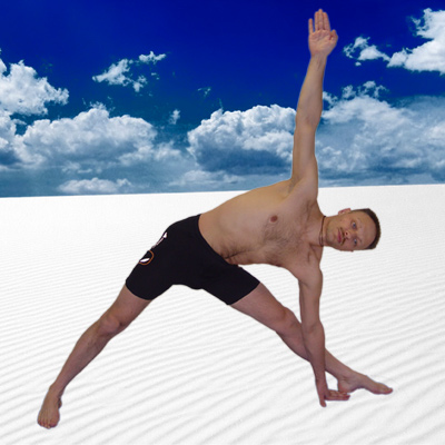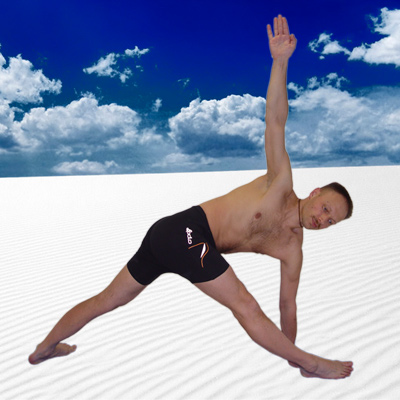 Паривритта Триконасана "Паривритта" означает повернутый, развернутый вокруг или назад, "трикона" - треугольник. Это поза развернутого треугольника. Она обратна Уттхита Триконасане.