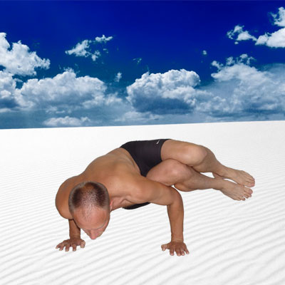 Бхуджапидасана От слов "бхуджа" - рука, плечо и "пида" - боль, давление. В этой асане задняя поверхность коленей ложится на плечи, а равновесие поддерживается кистями рук, отсюда название.