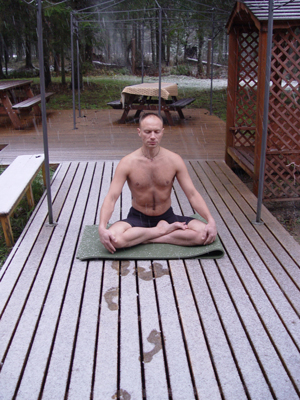 Мы честно сели в лужу, которая должна была быть снегом. И лужа была прекрасна. Хотя поначалу не помогало никакое туммо, а уныло-синюшные конечности напоминали пупырчатые ножки Буша. Нет, не то чтобы было совсем холодно, просто торчащие из квазилотоса пальцы ног захотелось спрятать под мышки. И тут задерживай дыхание – не задерживай, а лужа не закипит.