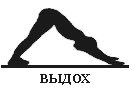 Перенесите левую ногу назад и поставьте около правой. Одновременно поднимите ягодицы и опустите голову между руками так, чтобы тело образовало треугольник с полом. Это движение выполняется на выдохе. Целью является достать пятками пол. Нагните голову по возможности так далеко вперед, чтобы глаза смотрели на колени. Фокус своего осознания направить на область шеи.