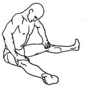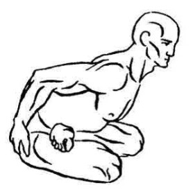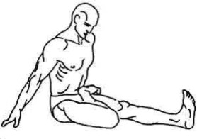 «Нагреваемая дыханием» нога как бы «оттаивает» в тазобедренном суставе, ложась коленом на пол. Ни одну из седалищных костей от пола не отрывать. Можно очень осторожно и мягко помогать себе руками (рис.4). В процессе подготовки к освоению Падмасаны целесообразно какое-то время ограничиваться этой фазой упражнения, многократно повторяя ее по очереди обеими ногами и удерживая подольше, добиваясь того, чтобы колено в конце концов устойчиво ложилось на пол и при расслаблении не приподнималось.