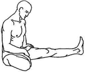 Мукта-падмасана. Сесть на пол с прямыми ногами, разведя их в стороны до утла примерно в 45 градусов. Немного наклониться, сгибаясь в тазобедренных суставах, так, чтобы таз поворачивался вперед относительно прямых ног. Живот при этом прижимается к бедрам. Вытянуть ягодицы вверх, слегка разворачивая нижние поверхности бедер наружу и «раскрывая» промежность в направлении земли (рис.1).